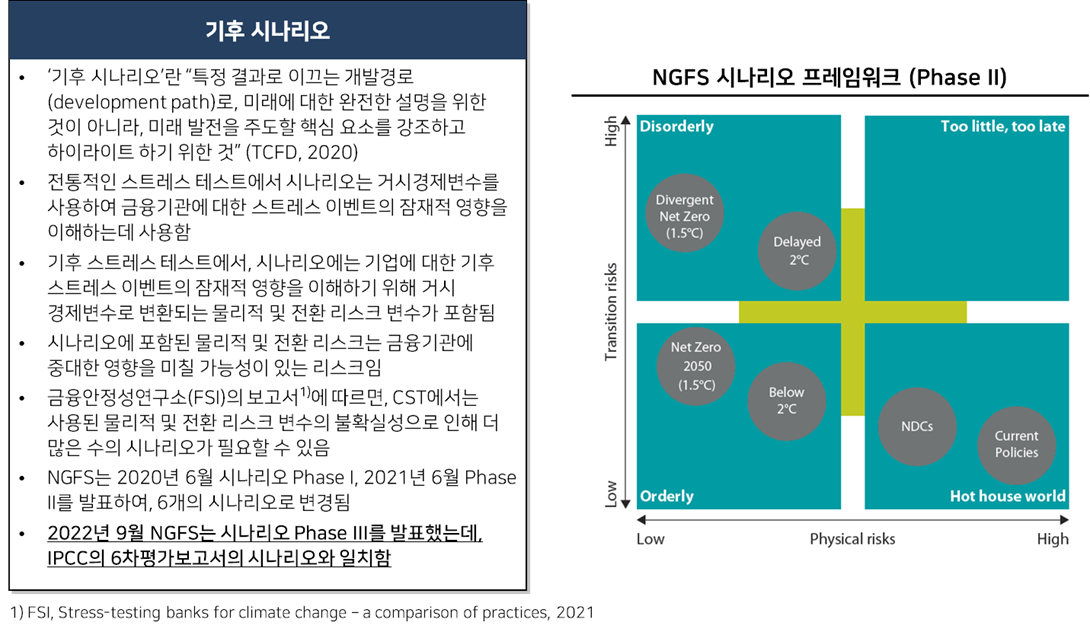 한국금감원은 이행 리스크와 물리적 리스크를 모두 평가할 수 있는 기후 시나리오 개발 및