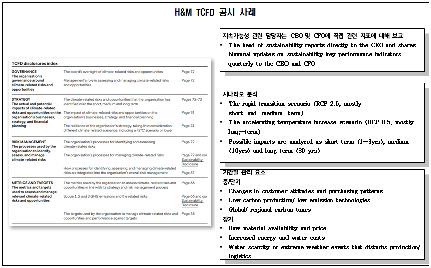 최근 글로벌 기업인 H&M 그룹은 Value Chain 전반에 걸친 배출량을 줄이기 위한 프로젝트를 위해 연간 약 3억 달러(원화 기준, 약 4,000억 규모)의 예산을 집행하겠다고 밝힌바 있으며, 2040년 넷제로(Net-Zero) 목표를 달성하기 위해 2030년까지 Scope 1,2,3의 절대 배출량을 56% 줄이겠다는 중기 목표를 발표하였습니다.