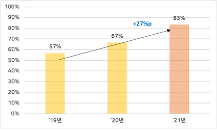 < 30대 대기업 3개년(‘19~’21) 공급망 ESG 평가 수행 비율 추이 >