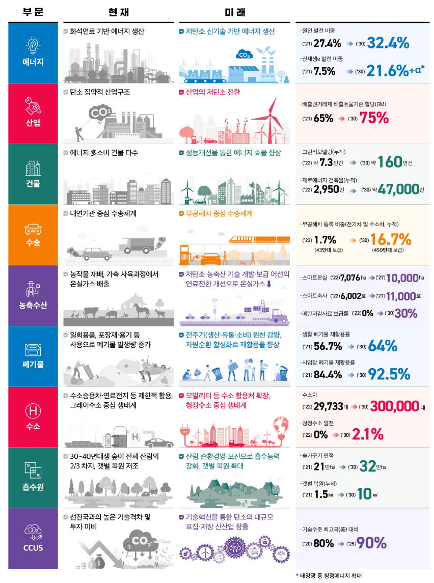 제1차 국가 탄소중립·녹색성장 기본계획 정부안을 21일 발표하며,