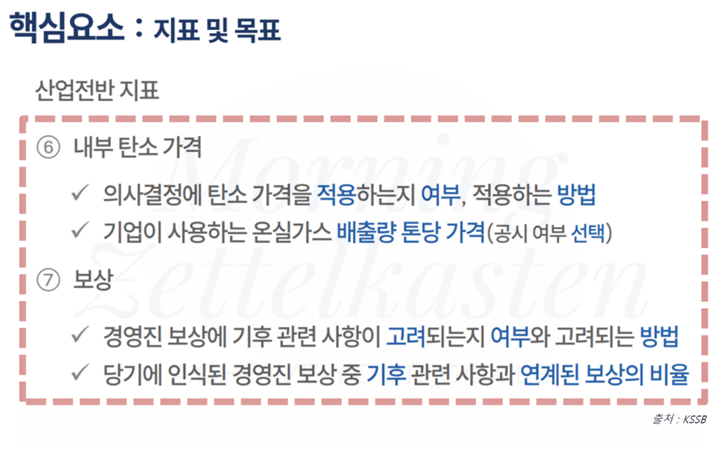 핵심요소 4) 지표 및 목표 : 산업전반 지표 - ⑹ 내부탄소가격, ⑺ 경영진 보상