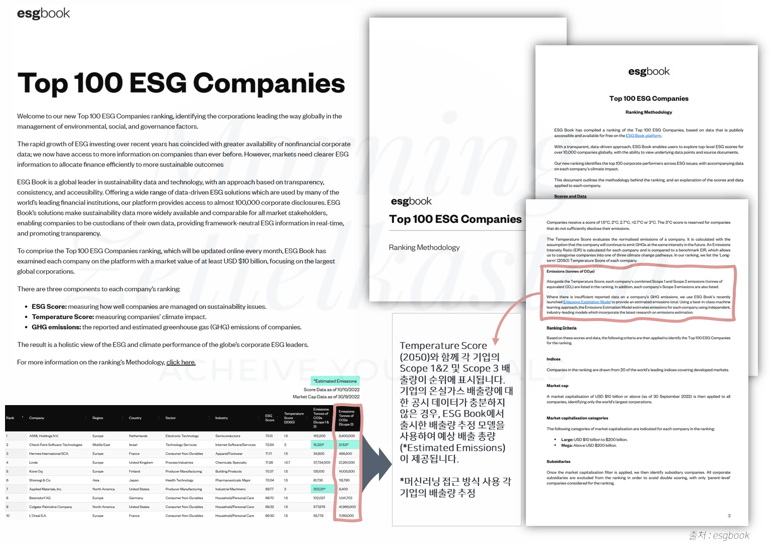더불어 이미 글로벌 투자사인 DJ, JP모건 등은 Global ESG Data Provider(esgbook 등)로 부터 공시된 기업들의 Scope 3 정보를 이용하여 투자의사 결정에 반영하고 있음 또한 간과해서는 안 될 부분으로 보여집니다.
