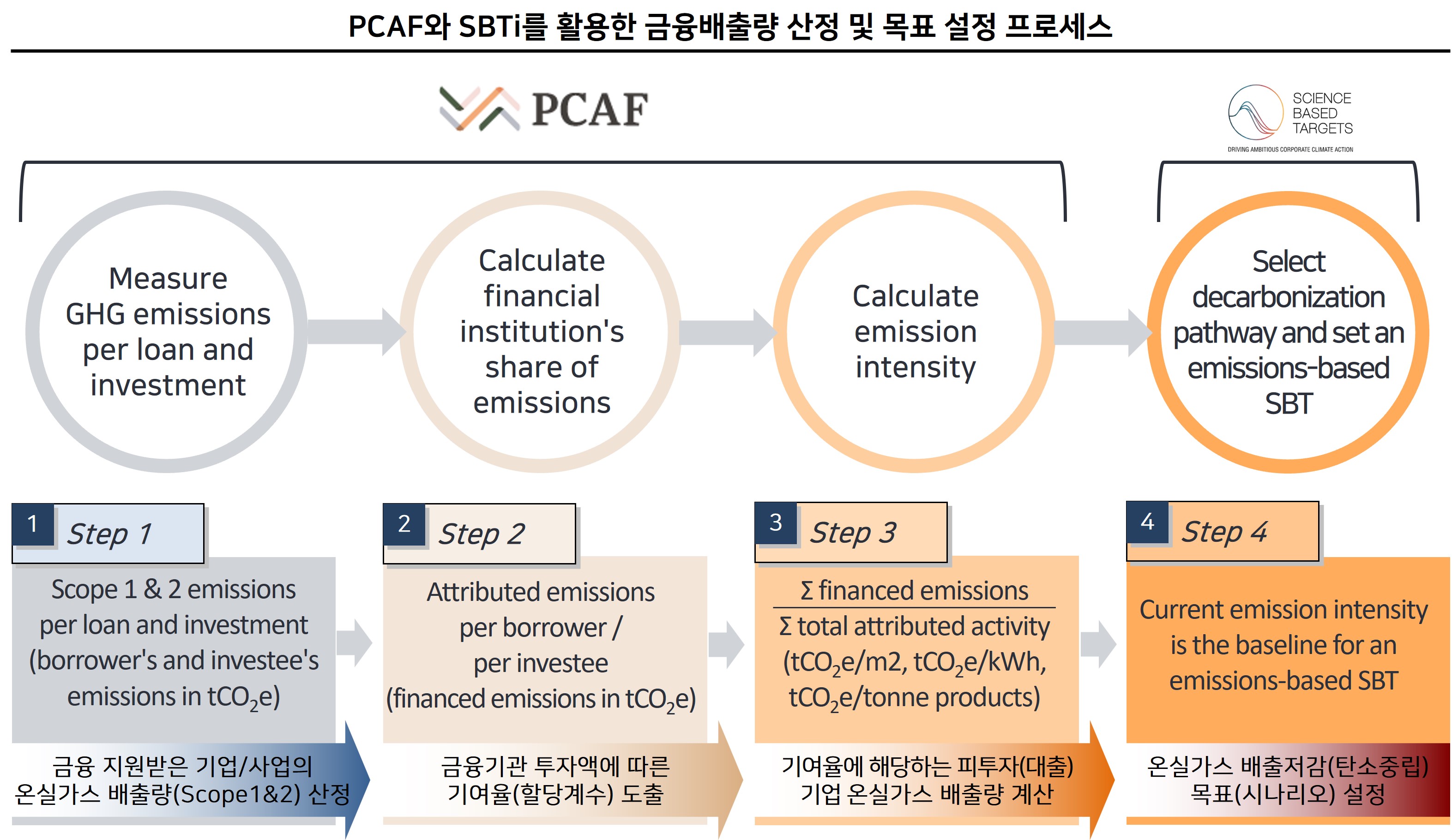 PCAF 방법론을 통한 금융 배출량 산정은 금융기관이 넷제로(Net zero)로 가기 위한 여정의 여러 단계 중에 첫 번째이자 시작인 만큼 정확한 산출이 필요하며, 이는 현재 금융기관들이 당면한 과제이기도 합니다.