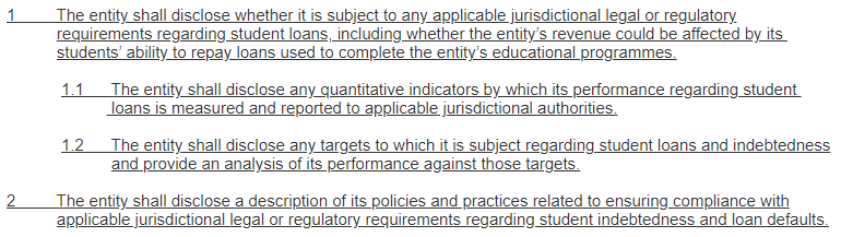 | SV-ED-260a.6. Description of policies and practices related to student indebtedness and programme loan defaults |