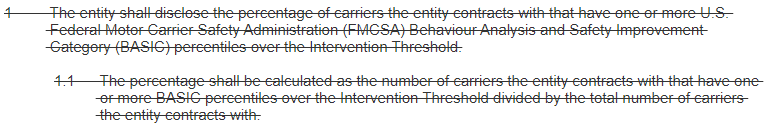 - BASIC은 개정 접근법 4를 사용하여 IF-WM-320a.2, TR-AF-540a.4 및 TR-RO-540a.2 지표를 제거해야 했던 동일한 데이터베이스 도구이지만, 이러한 예에서는 제거 후에도 다른 유사한 지표가 남아 공개 주제를 뒷받침함. 새로운 정성적 지표 TR-AF-430a.3은 기업이 공급망 중단을 방지하기 위해 모든 운송 수단에서 계약 운송업체의 안전을 관리하는 방법에 대한 정보를 제공하도록 요구함.