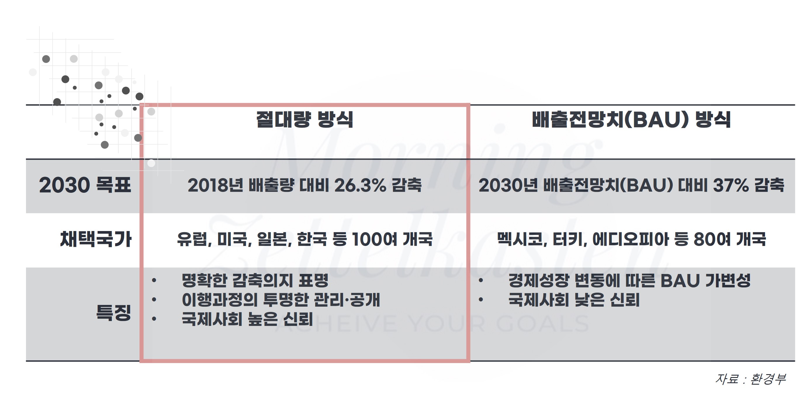 * BAU(Business As Usual, 배출 전망)란, 추가적인 감축 노력을 하지 않고 현재 추세로 지속될 때 예측되는 미래의 온실가스 전망치