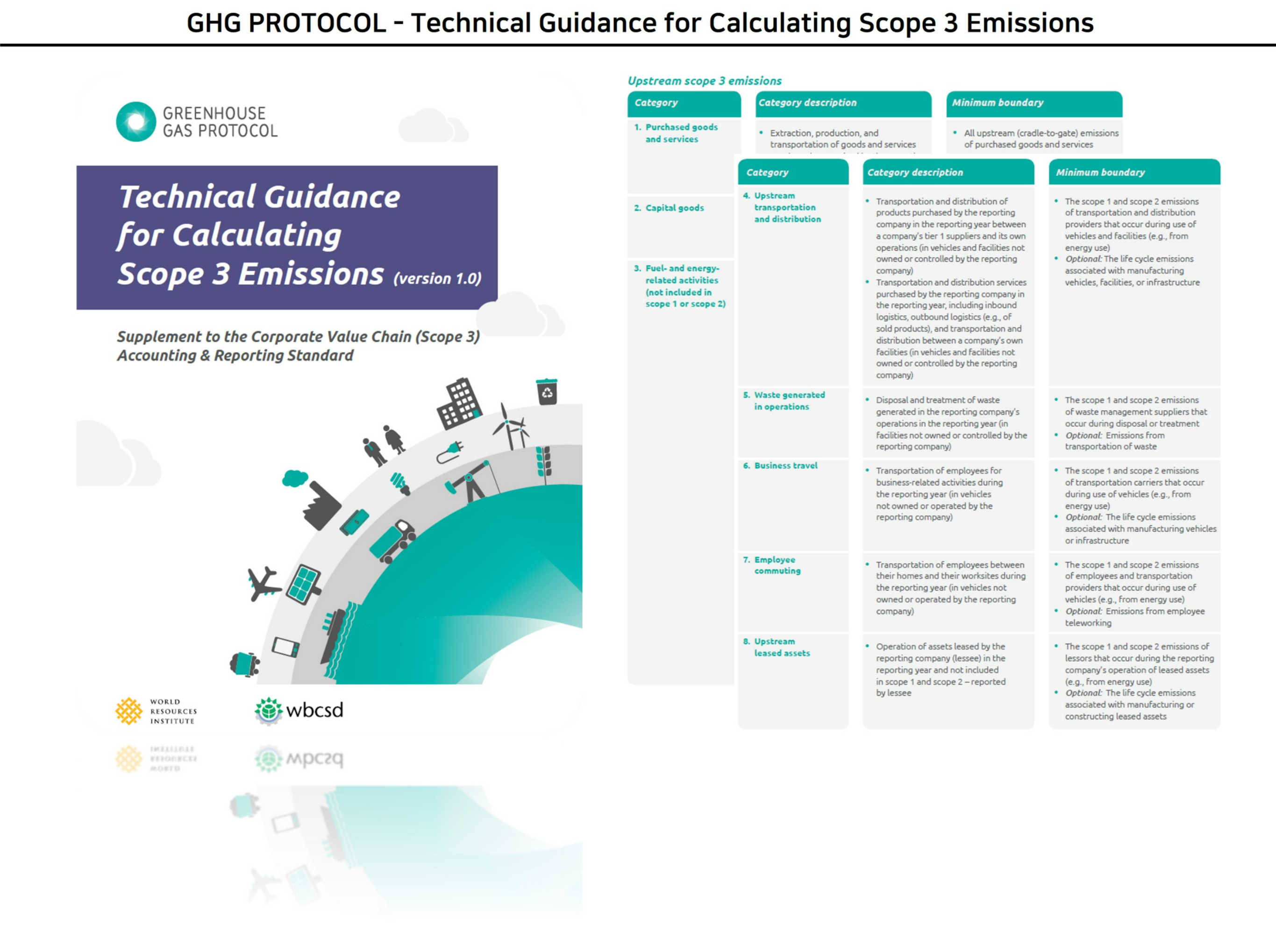 GHG(Greenhouse Gas) 프로토콜은 국제적으로 인정된 온실가스 배출량 산정과 보고에 관한 파트너십으로 온실가스 회계처리 및 보고 기준을 제공하고 있습니다. Scope 3 온실가스 회계처리 보고기준(Scope 3 GHG Protocol Accounting and Standard)에서 정의하는 Scope 3 15개 카테고리별 설명에 대한 정보를 확인해보세요.